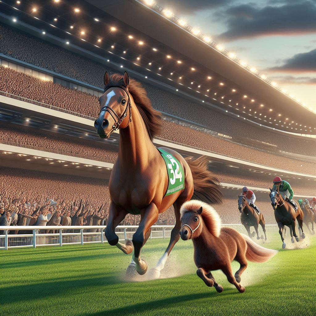 優秀なサラブレッドのなかにポニーが1頭。・・・⇓私の心境は、こんな感じ・・・